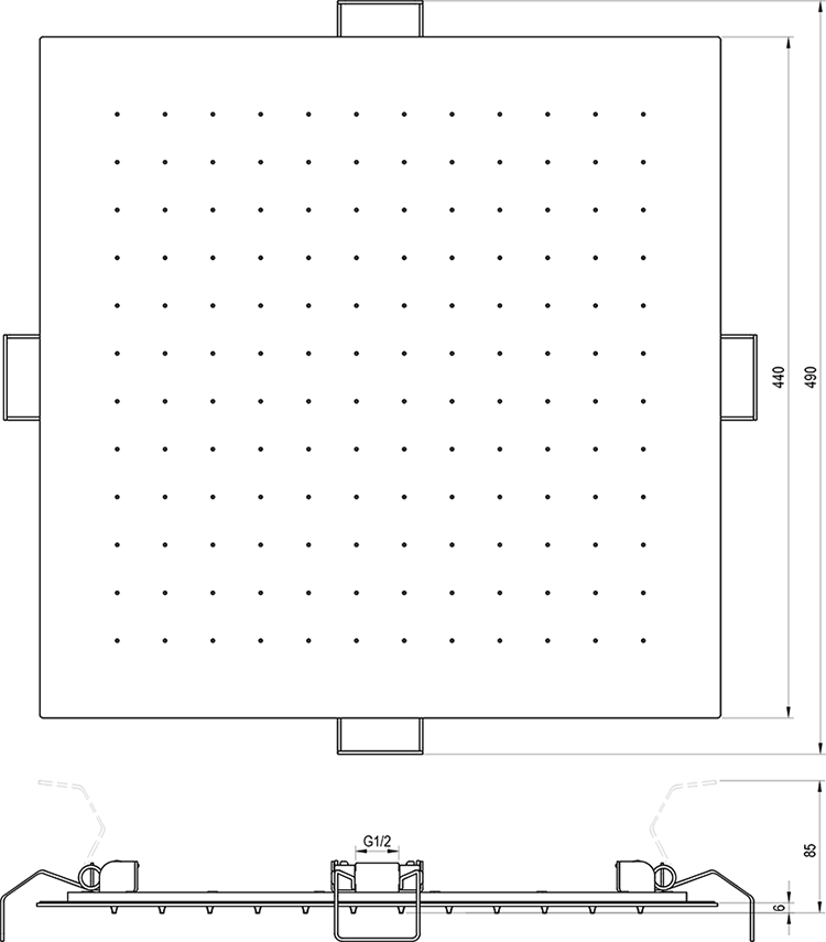 Stropní hlavová sprcha, čtvercová pro luxusní sprchování. V chromovém provedení.