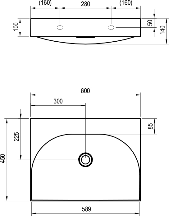 Foto - Ravak Umyvadlo Lite 60, bez otvoru pro baterii, bez přepadu
