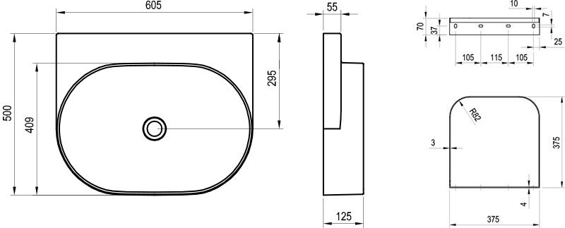Tenkostěnné keramické umyvadlo Yard k instalaci na konzoli Yard nebo na konstrukci CS Yard, bez přepadu. V antracitovém provedení. Bez otvoru – pro kombinaci s umyvadlovou podomítkovou baterií.
