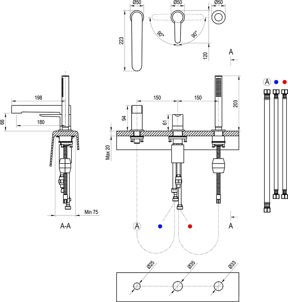 Stojanková batéria sa skladá z troch zladených komponentov: ramena na napúšťanie, ručnej sprchy a páky, ktorá medzi nimi prepína a nastavuje teplotu. Prúd je stabilný. Inštaluje sa priamo do okraja vane alebo do dosky za vaňou. Hadica sprchy tak neprekáža počas kúpania.