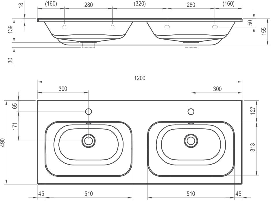 Foto - Ravak Dvojumyvadlo Chrome Slim 120, s otvory pro baterie, s přepadem