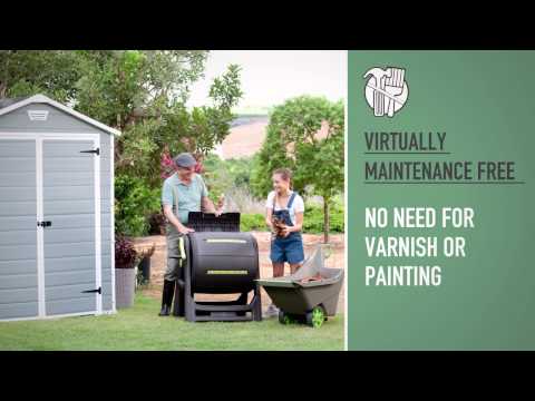 Zahradní domek na nářadí Manor z dvojitých stěn z polypropylenové pryskyřice v tmavě šedé barvě. Dokonale spojuje estetiku designu pravého dřeva s nejlepšími vlastnostmi plastů, takže je zcela odolný vůči UV záření a povětrnostním vlivům. Skvěle se hodí pro skladování zahradního i dílenského nářadí, sportovního náčiní a dalšího vybavení.