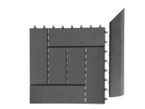 Terasová dlažba Terraco Palmyra s jednoduchou instalací je vyrobena z kvalitního WPC materiálu. Je vhodné ji použít jako exteriérovou podlahovou krytinu. Rozměr jedné dlaždice Palmyra je 2,3 × 30 × 30 cm.