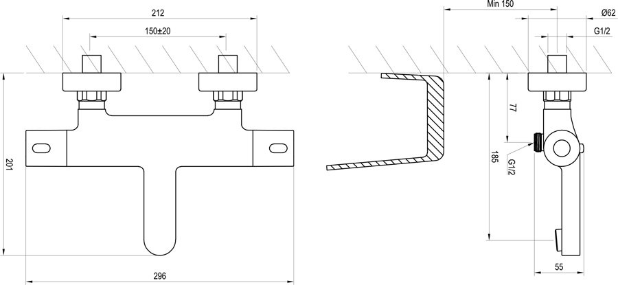 Termo termosztatikus fali kádcsaptelep, zuhanyszett nélkül. Króm felülettel. Állandó vízhőmérséklet beállítás.