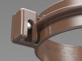 Plastová objímka svodu Aqua opatřená závitem pro šroub je dostupná v hnědé, nebo antracitové variantě pro přichycení svodové roury ke zdi objektu. Objímka se instaluje v rozteči 2 metrů a přitom dovoluje svodové rouře diletovat.