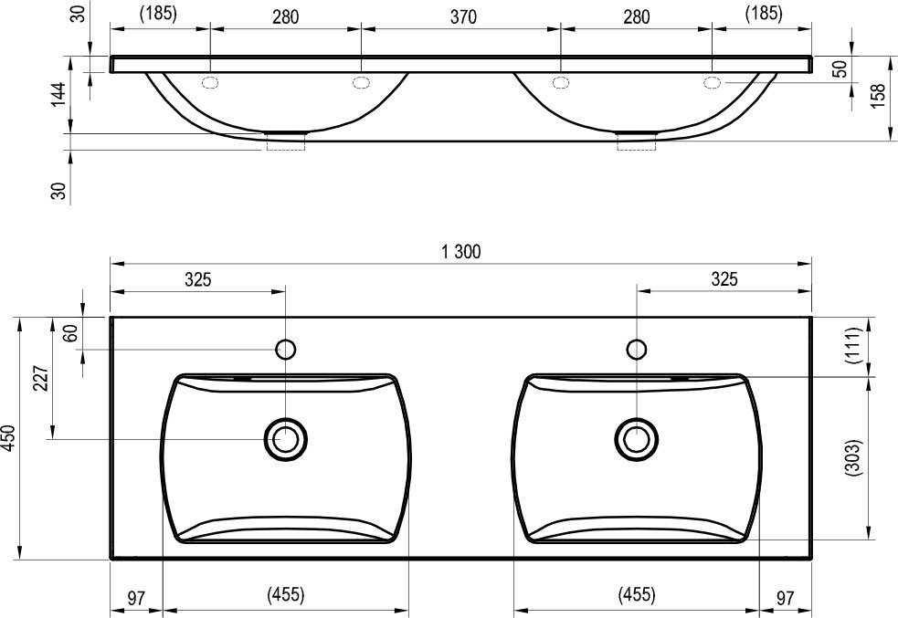 Nábytkové dvojumyvadlo z litého mramoru Classic II k instalaci na zeď nebo k zapuštění do závěsné skříňky, s přepadem. Bílé provedení.