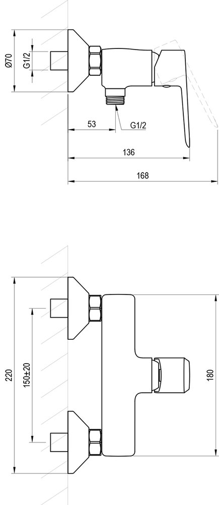 Nástěnná sprchová baterie Life, bez sprchového setu. V chromovém provedení.