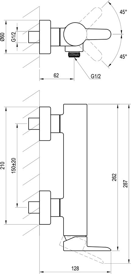 Nástěnná sprchová baterie Puri, bez sprchového setu. V chromovém provedení. S funkcí CoolFeel zabraňující nadměrnému ohřívání povrchu baterie.