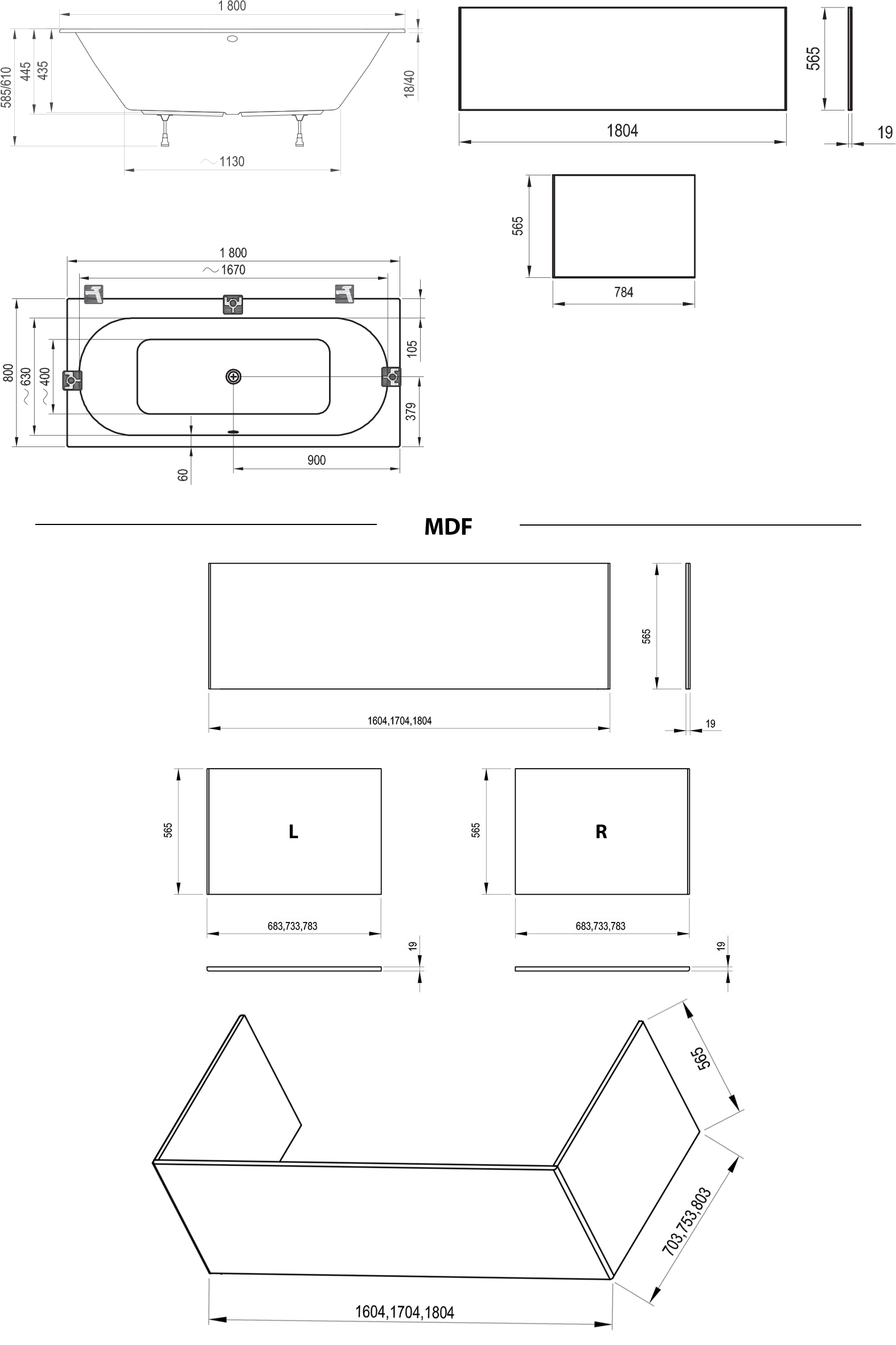 Vanu lze doplnit vanovou zástěnou CVS2, PVS1, NVS1, BVS1, BVS2, případně VS2, VS3, VS5. K vaně lze dokoupit čelní i boční panel v bílé barvě nebo v dekoru dřeva (ořech, dub nebo satinové dřevo). K vaně je nutné použít vanový odtokový komplet s délkou 80 cm.