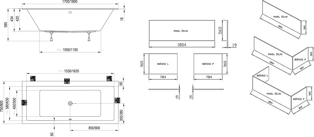 Vaňu Formy 01 Slim je možné zapustiť do obmurovky. Vaňu možno doplniť vaňovou zástenou CVS2, VS2, VS3, VS5, PVS1, NVS1, BVS1, BVS2. K vani možno dokúpiť čelný aj bočný panel z MDF dosky v bielej farbe. Systém prichytenia čelného panelu je súčasťou panelu, nie je potrebné dokupovať panelkit!K vani je nutné použiť Vaňové odtokové komplety> s dĺžkou 80 cm.