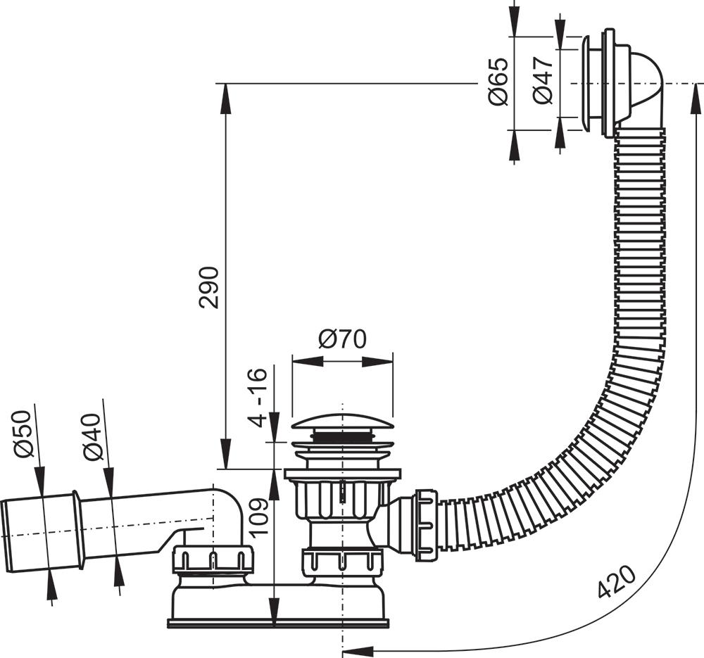 Vaničkový sifon pro hlubokou vaničku Sabina s kovovou krytkou v provedení lesklý chrom.
