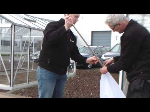 Žlab stínící clony se skládá z jednoho kusu bílé látky chránící proti slunci. Látka visí bočně na okapových profilech a je připevněna na kabelech, což vám umožňuje snadno ovládat, kterou část skleníku chcete chránit před sluncem. Pokud zábradlí úplně vysunete, látka zastíní 60 % slunečního záření, které by do skleníku svítilo. To je způsob, jak pomoci paprikám a okurkám přežít horké léto!