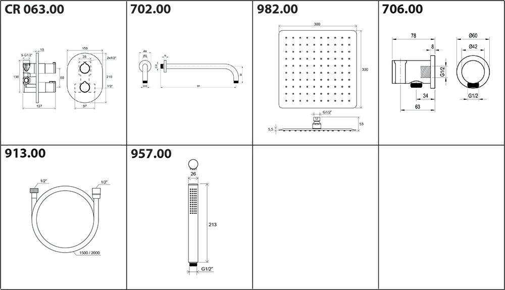 Sedmidielny sprchovací set Chrome s podomietkovou termostatickou bateriou. Vo vyhotovení lesklý chróm.