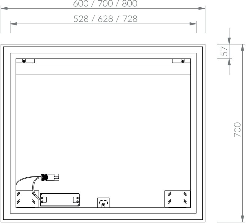 Zrkadlo je vybavené bočným LED osvetlením a pripravené na pripojenie k napájaciemu napätiu 230 V. Inštaluje sa zavesením na stenu.